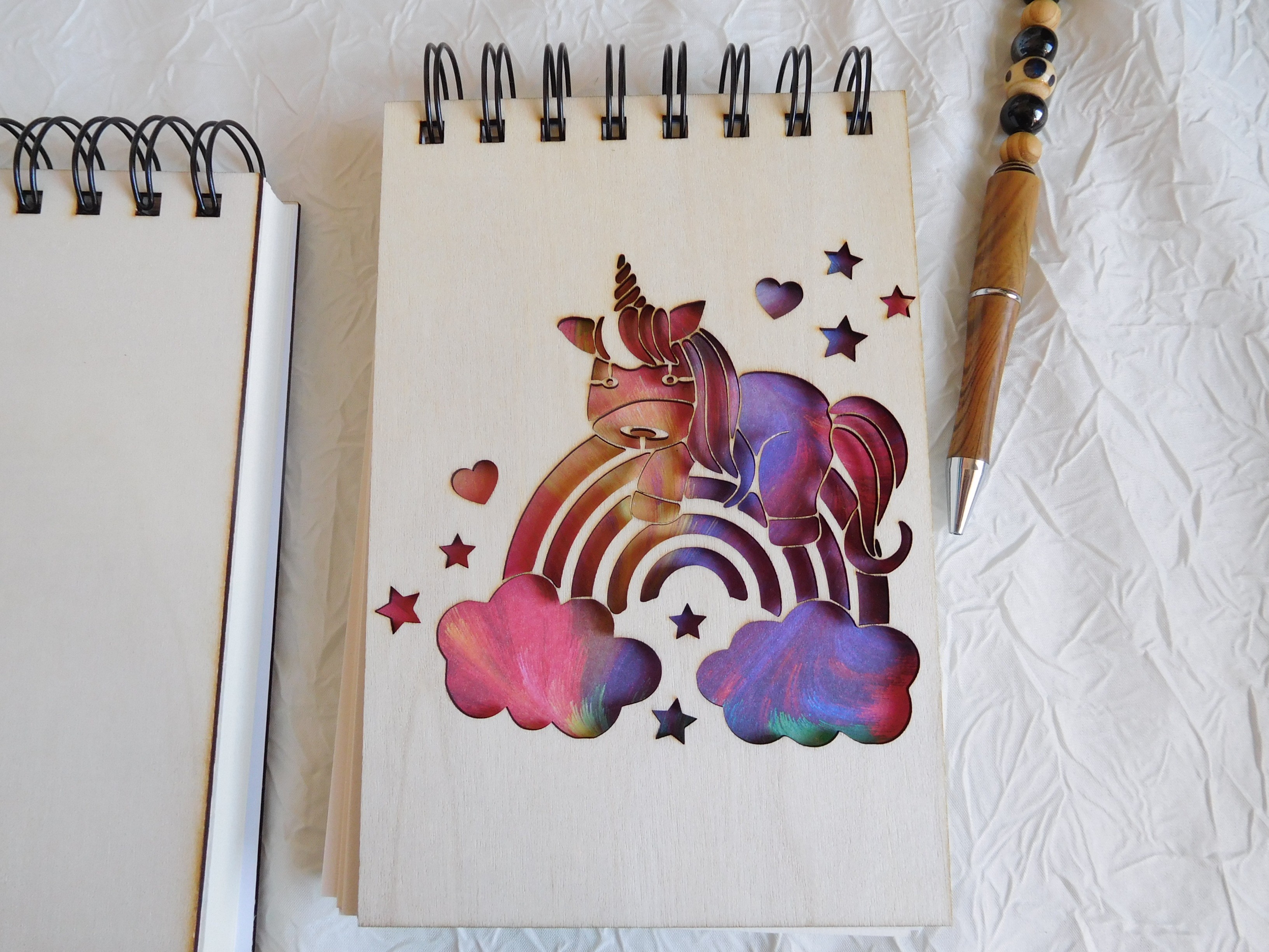 Charmant carnet personnalisé avec une couverture en bois découpé au laser . Un arbre de vie est découpé au centre . La couverture recto et verso sont en contreplaqué de peuplier.